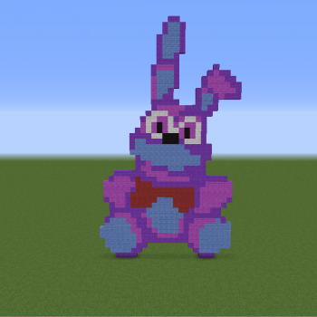This looks like a cute version of Bonnie from Five nights at Freddy's. It reminds me of one of my fluffy animals. I love Bonnie's belly and his long ears. He looks kind of happy here, not intimidating at all... but believe me, his true nature is evil, this cutie here is evil. So if You like to build this fluffy Bonnie then check out the blueprints below. But be careful of this guitarist, he can cause You a game over very easily ... just keep Your eyes open, alright?