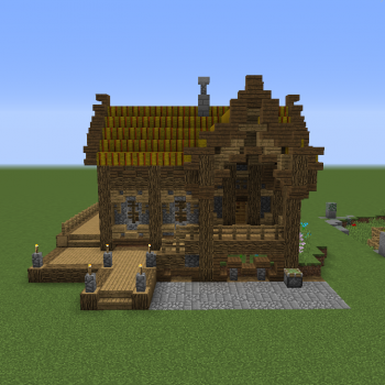 I am not the only one who loves old houses, right? Anybody there? I mean just look how cute and honey it is, the porch is just huge and the torches are a really good touch. I love the dark brown colors and look at the roof, isn't it unique? If You go inside then it looks pretty good, there is even a big kitchen table and a big bedroom with two beds. So if You are like me and love this old wooden house, then check out the blueprints below and just start building it. :)