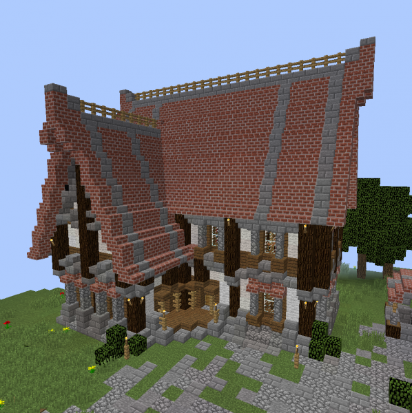 This is the perfect house right here! It is not very big or small, it is perfect and it looks amazing. The roof is so unique and detailed plus the small windows, light and dark colors together and just everything is so cool about this Medieval house here. Do You like the interior? My favourite part is the double bed, it is just perfect! You can add or remove everything You want too, but before that You need to build the house, right? Blueprints are below :)