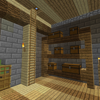 This is quite awesome actually, an armoury shaped like a box ... but as a strong and durable one - the both are strong. Well if You step inside the armoury then the interior looks like any other house - a lot of chests and other tools they might need in this place. Anyway, I feel like an armoury is a place every Medieval town needs because we really can't be without it - guns and armor! So if You still don't have an armoury then here is Your change to build one.