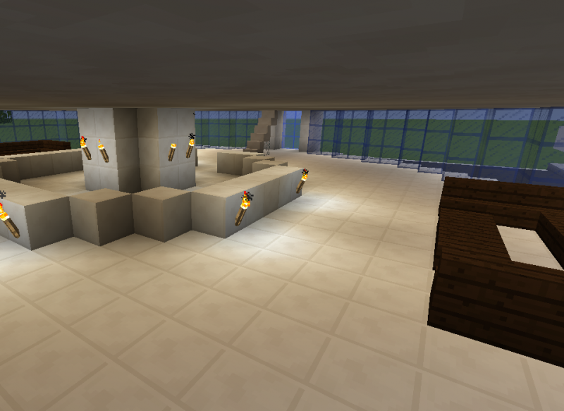 This 8-floor modern hotel is very elegant from the outside, glass giving it a curvy and a can of beans' type of shape that can be easily noticed from a distance. You can fit up to 50 hotel rooms to this building, making it possibly the biggest hotel in Your Minecraft world. Atrium is wide with a big empty space, the top of the building has a lounge area with water which is a perfect place to relax and enjoy a rest from surroundings. It may also refer to a spa You are planning to add to the highest floors of the building so You can go to cool down on the roof after a hot sauna. You can build Your own reception desk depending on preferences. It is lit up by torches but You could also use some glowstone to give it a modern and cosy touch :)