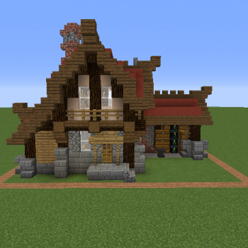 Wow, this Blacksmiths house is looking amazing. The design is absolutely gorgeous, it is so detailed and I'm loving the roof. If You go inside then it is pretty crowded in there, but it looks very cozy and it looks like it has everything a Blacksmith needs to have plus a lot of chests. So if You need one small Blacksmith then check out the blueprints and start building this beauty.