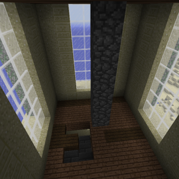 "Can someone explain the column of cobblestone in the center of this build starting at level 17 and going almost to the top?" -