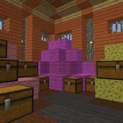 This is literally the most colorful barn I have ever seen, I bet people who love colors would love it. Just look how red it is and even the design is really cool. I can even say it is pretty roomy and there are so many hay bales inside laying there. I wonder what are all of those chests for, maybe there are some interesing stuff inside there? Well anyway if You like colors and love this Acacia farm barn then just check out the blueprints below and build it. Have fun :)
