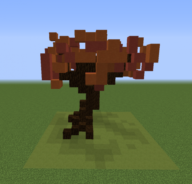A smaller tree for smaller homes, or parks or anything with trees actually. But it is totally orange, yeap, an orange tiny tree. To be honest it looks really cute and I love how detailed it is. It looks perfect for hanging a swing there, adding a chair or a blanket on the ground and just enjoying a warm summer day alone or even with Your friends. So if You feel like a small orange tree would look cool in Your Minecraft then just build it and have fun :)